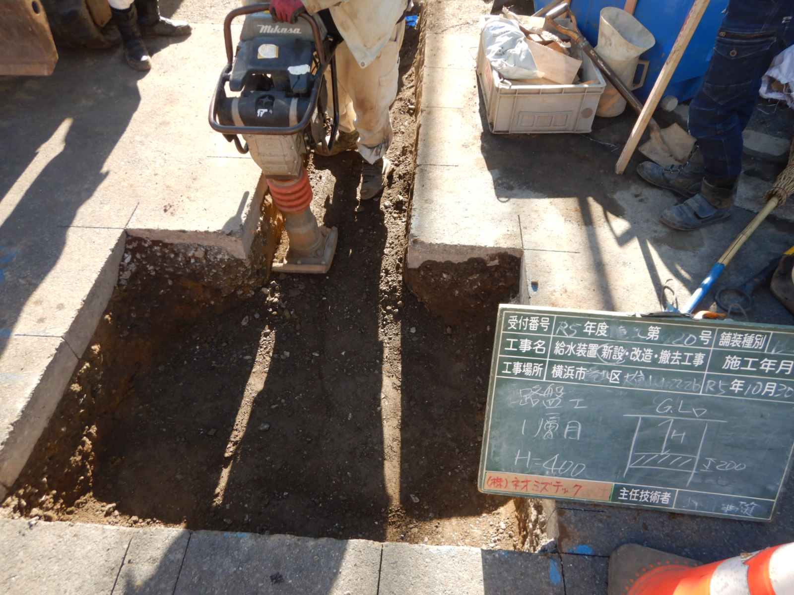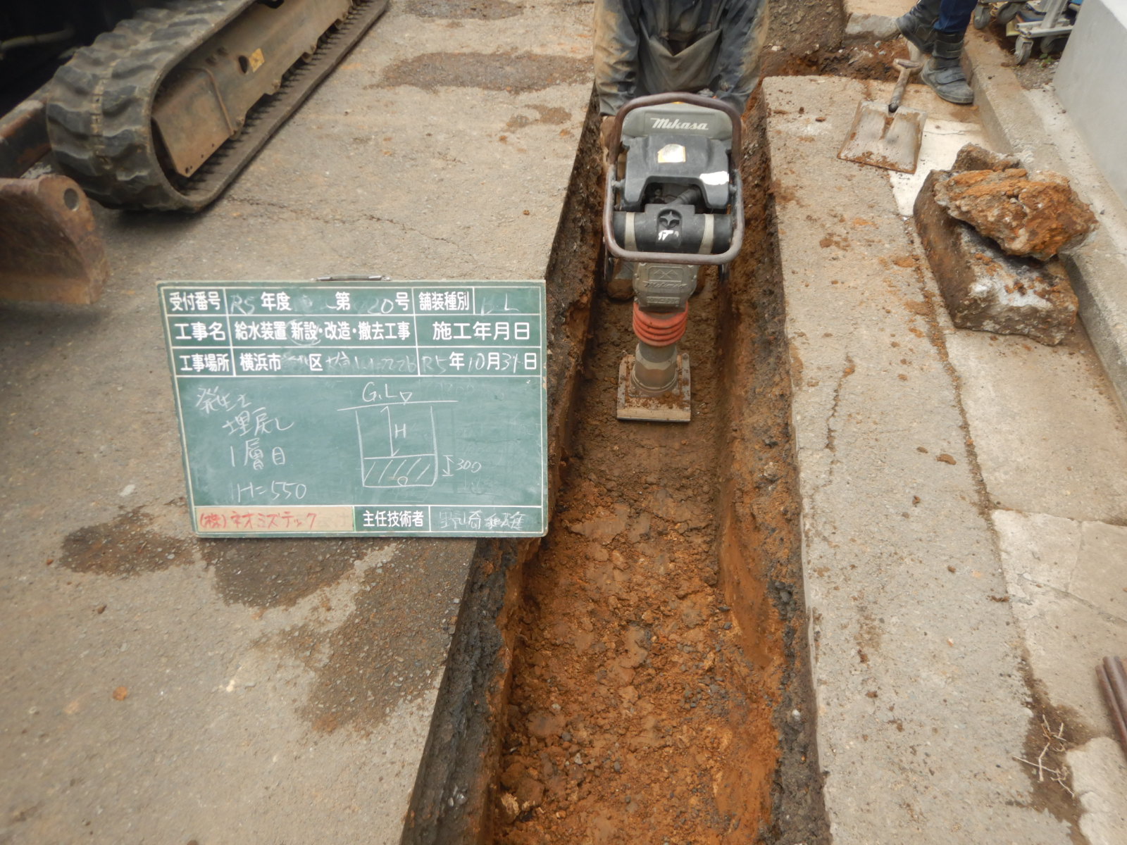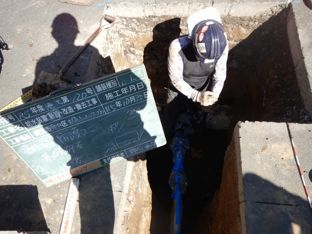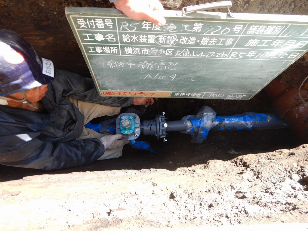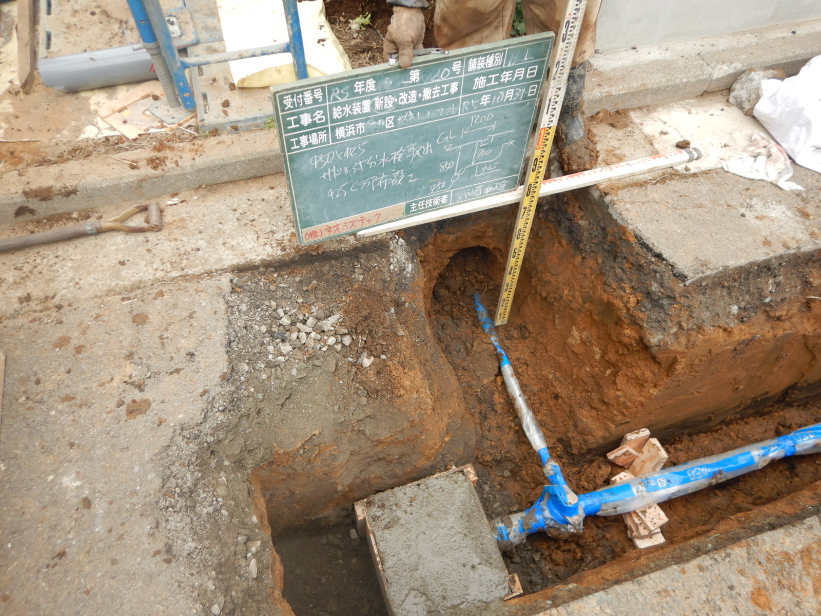朝に資材置き場(神奈川県横浜市青葉区鴨志田町236)に集合し、3tトラックに乗り込み現場へ向かいます。現場へ到着したら、早速打ち合わせ。作業の進め方などを全員が把握した上で開始します。まずは地面に穴を掘る作業からスタートします。その後各住宅に繋がる給排水管の設置作業を行います。入れ替え後、穴を元に戻し、工事は完了。片付けをしてから、資材置き場へ戻り、翌日の段取りを打ち合わせして退社です。現在弊社では、随時職人を募集しています!少しでもご興味のある方、お気軽にお問い合わせください♪
